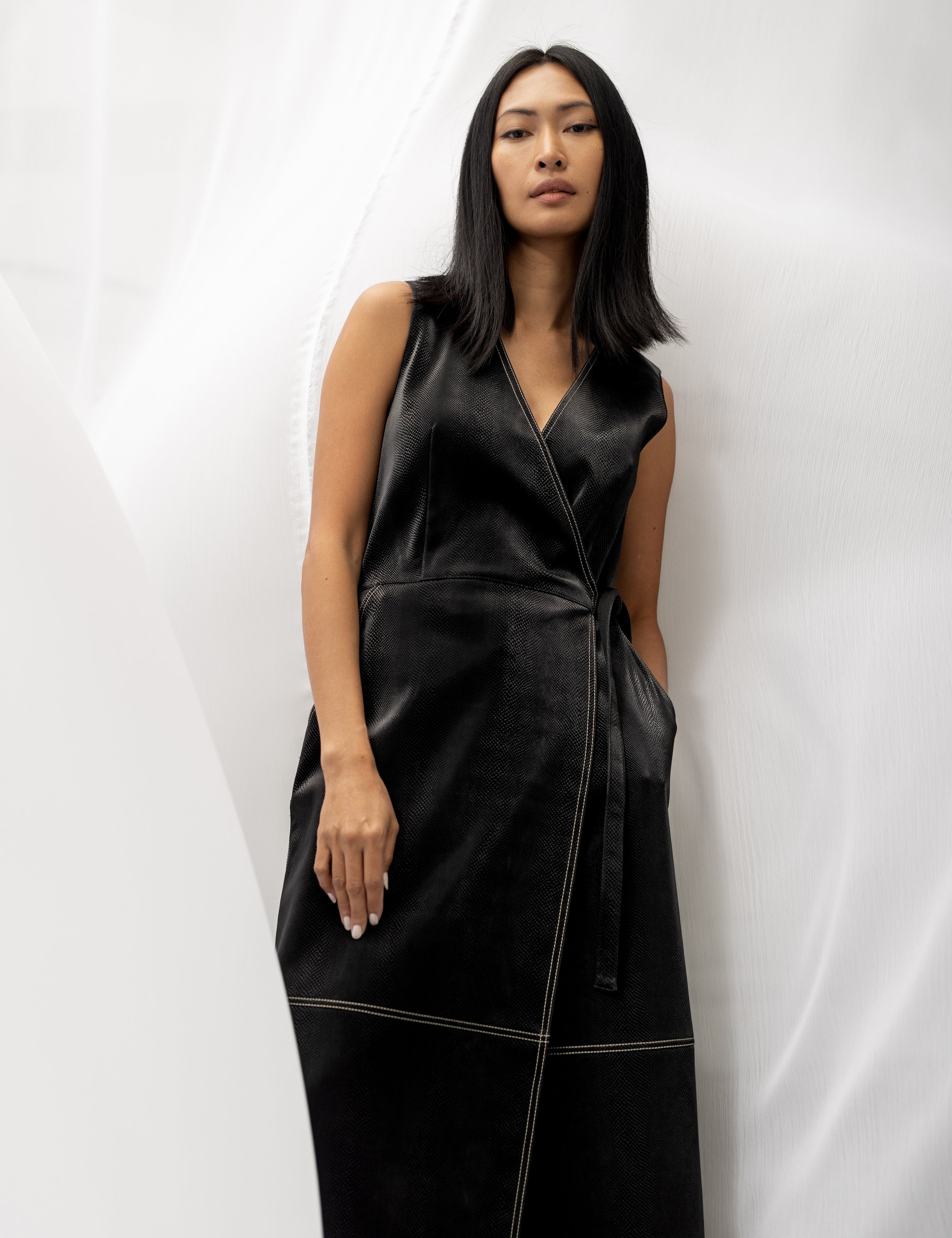 HART Snake Patterned Wrap Dress - Shiny Black