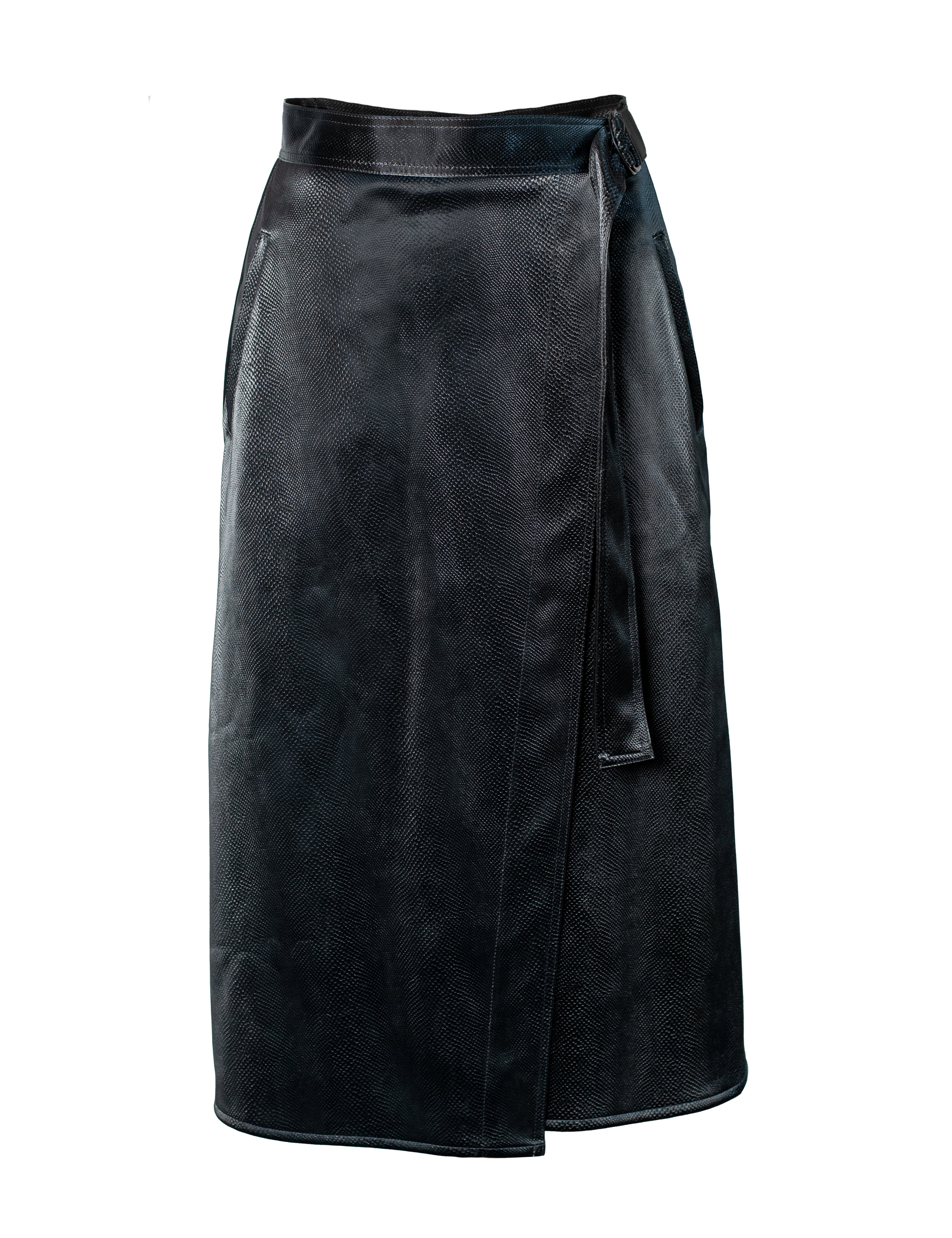 CARM Snake Patterned Wrap Skirt - Shiny Black
