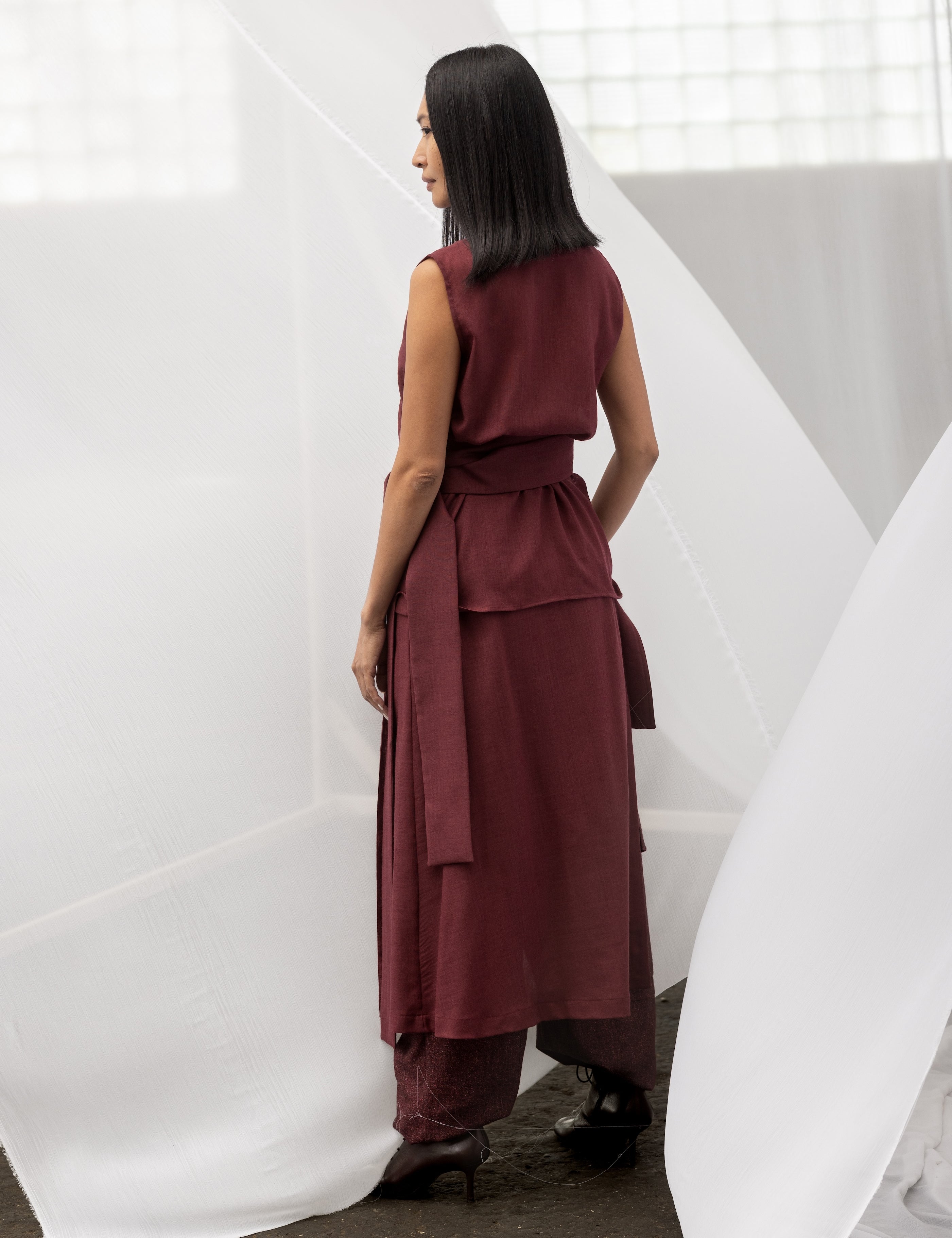 PELLE Wool Apron - Burgundy