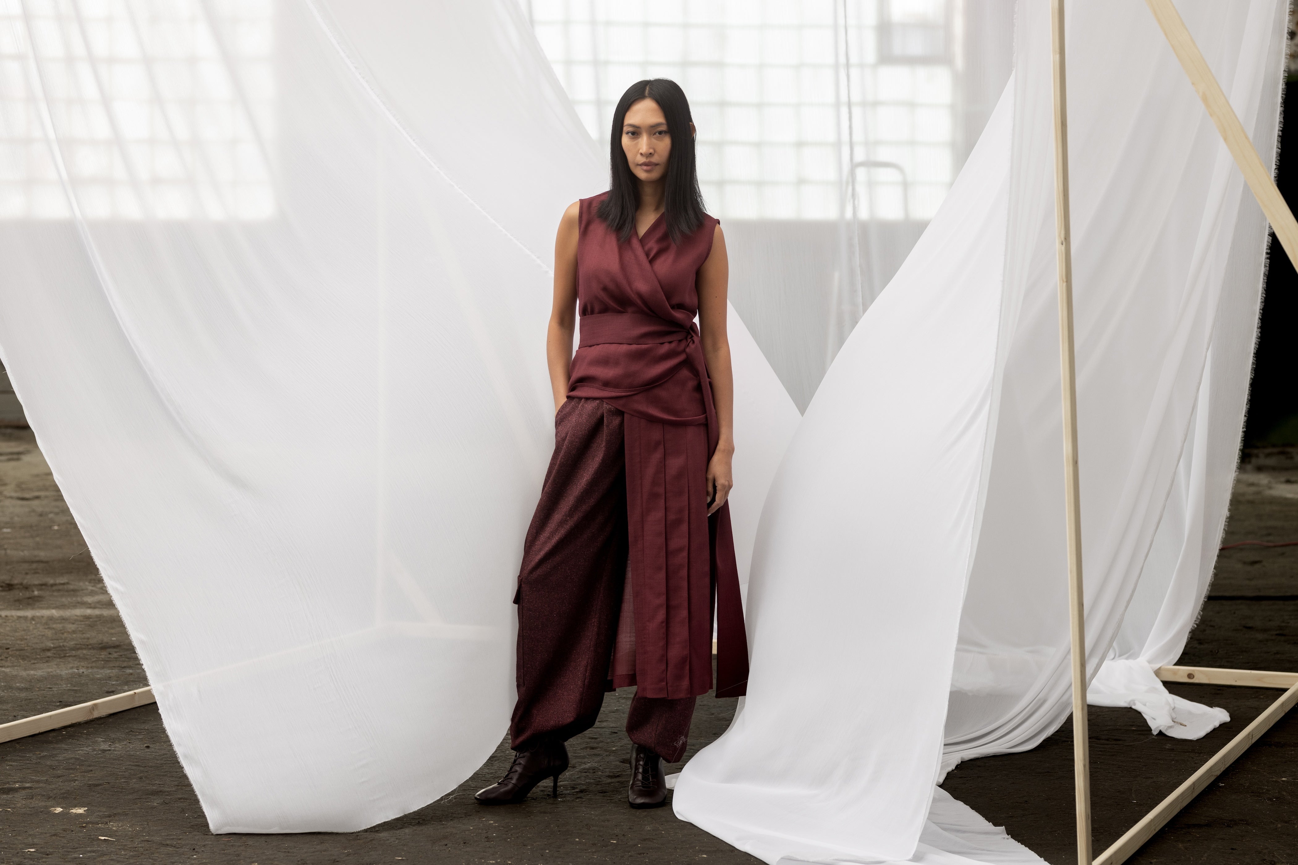 TARA Wool & Silk Pants - Burgundy
