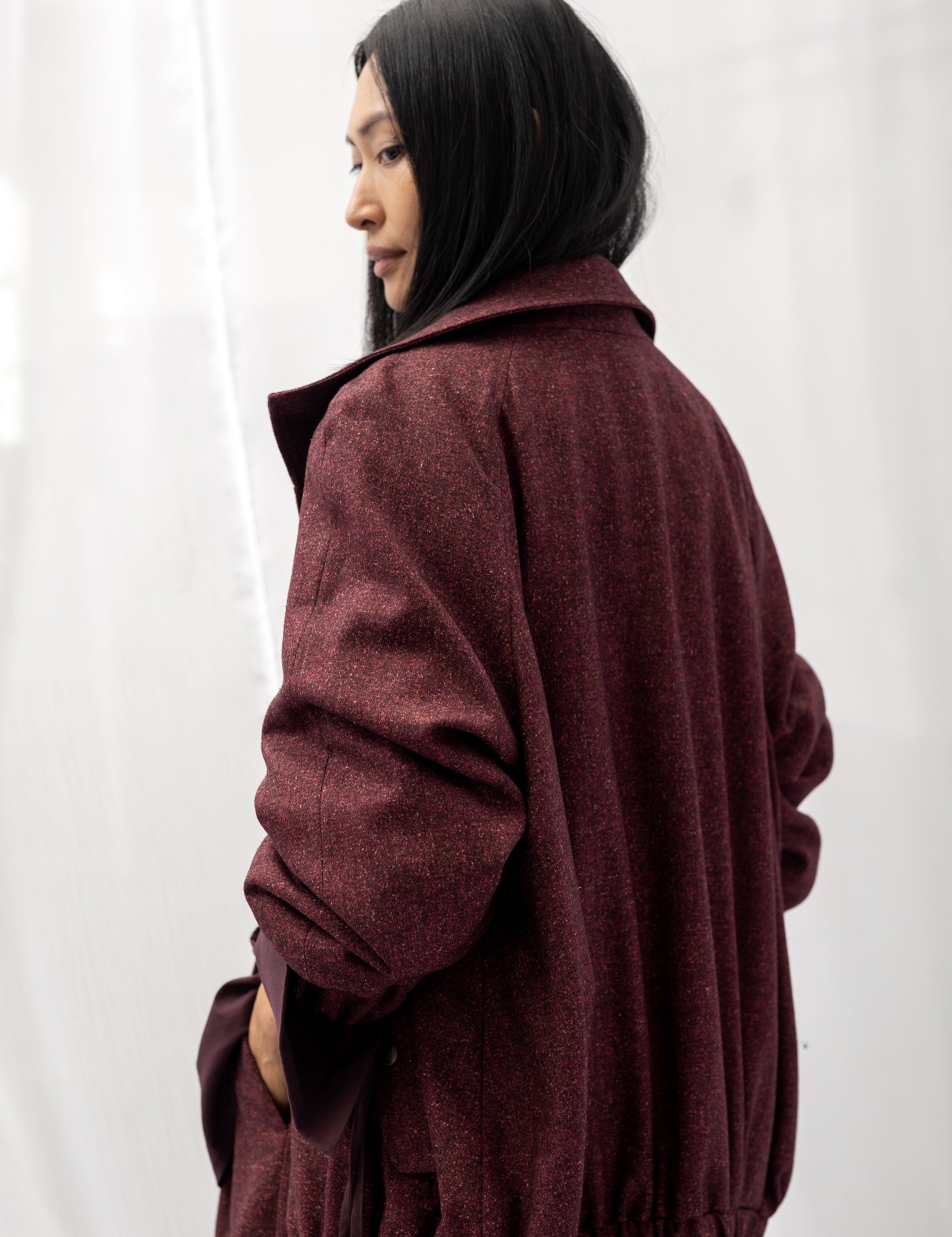 NIKO Wool & Silk Bomber Jacket - Burgundy