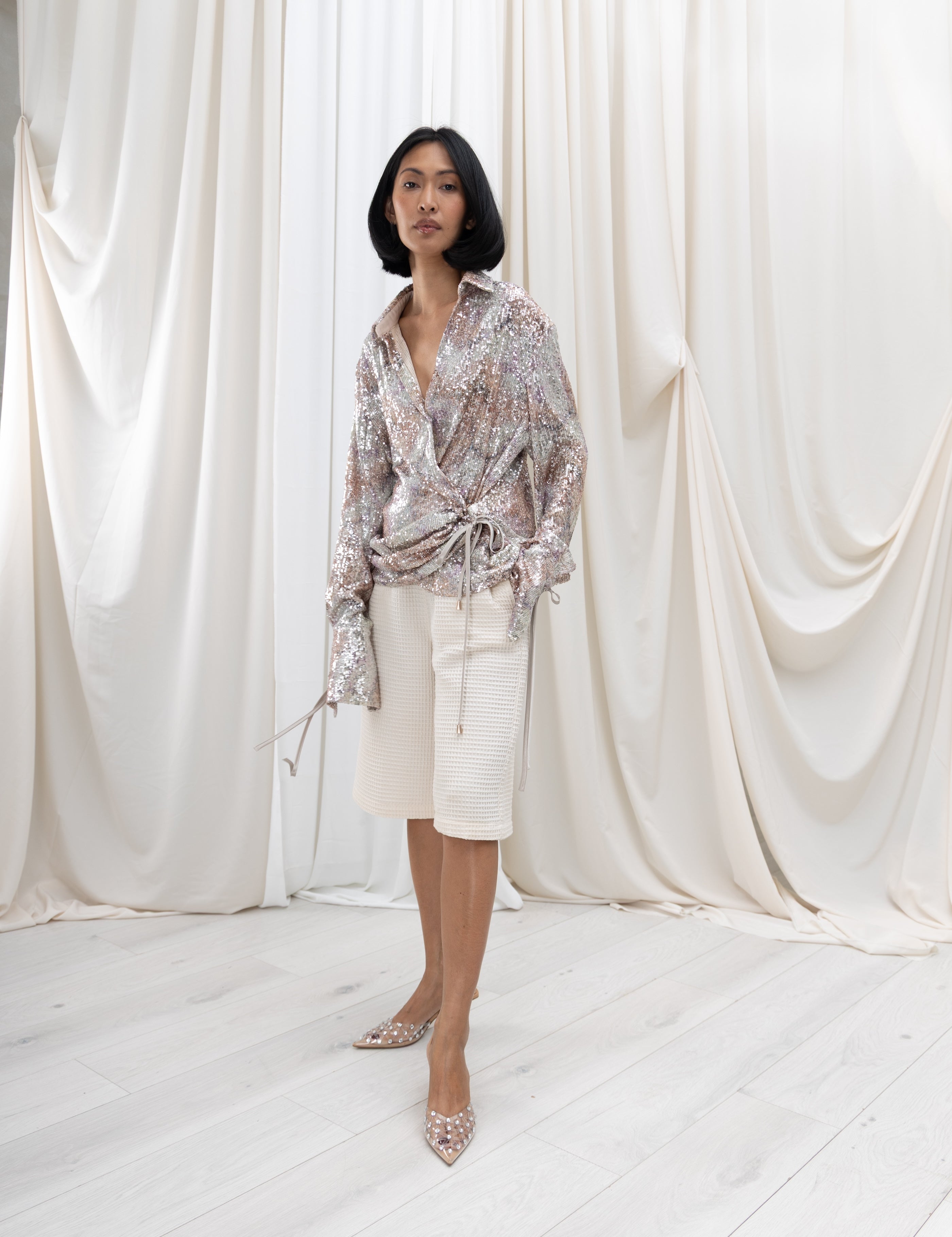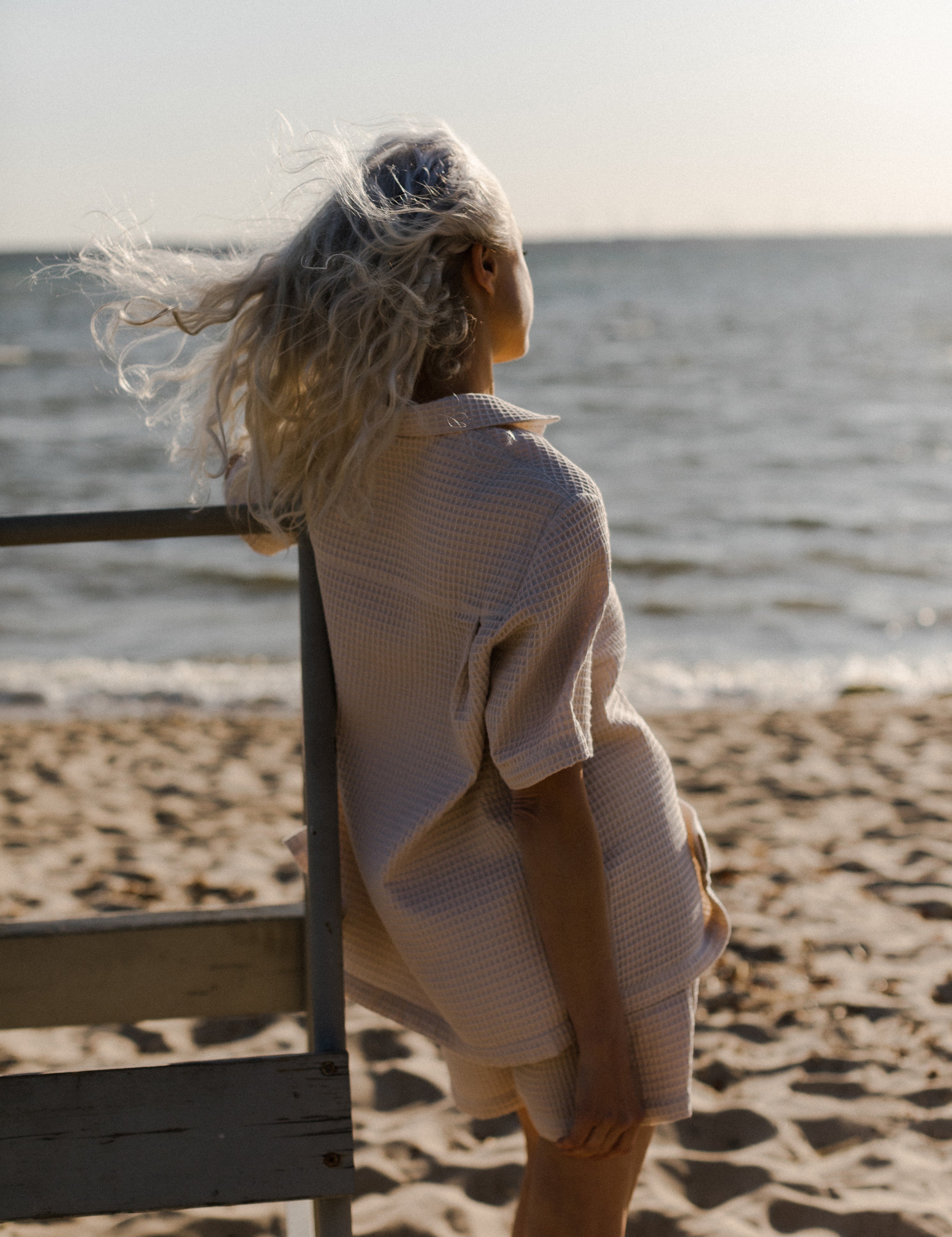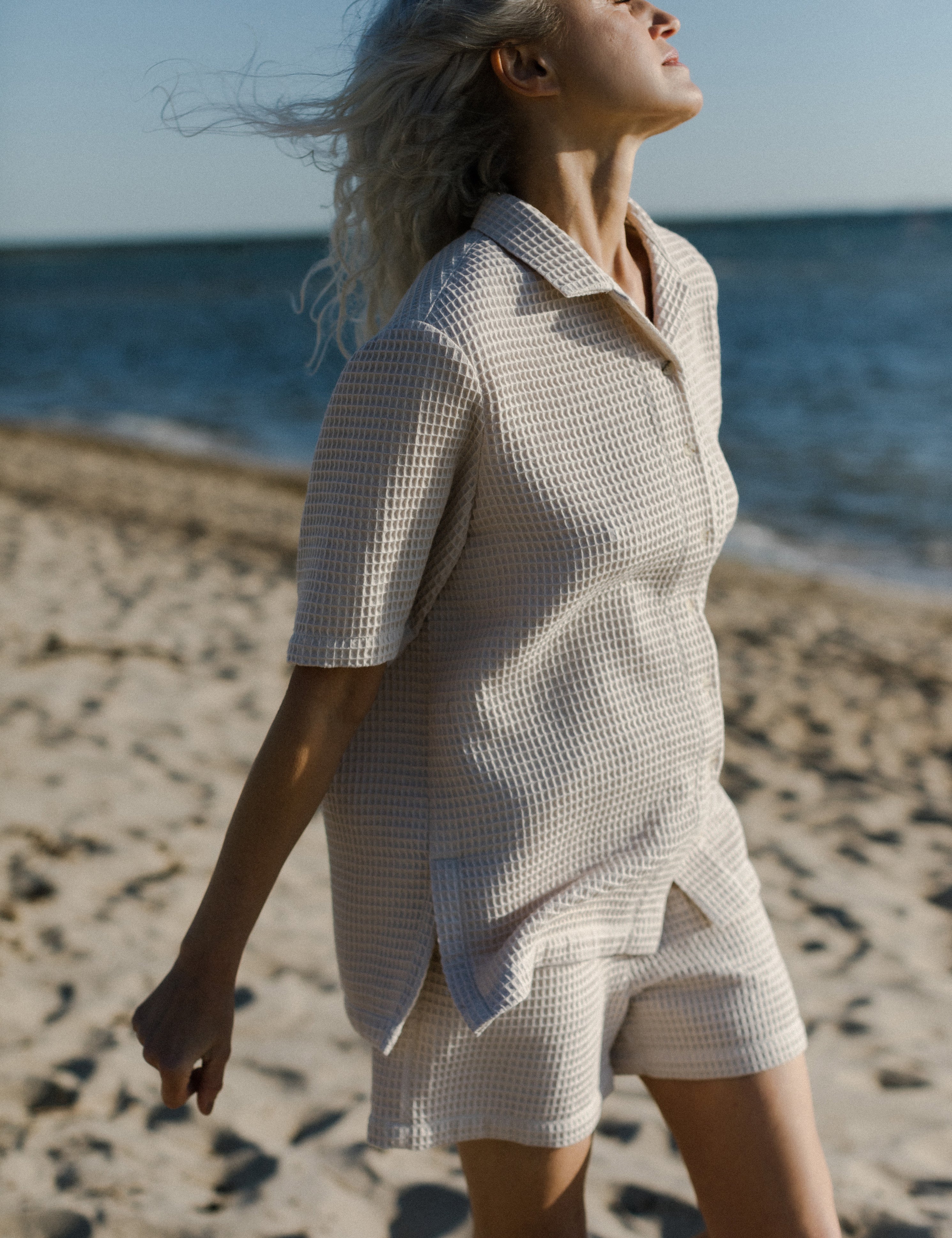 LIN High-Waist Shorts - White Waffle