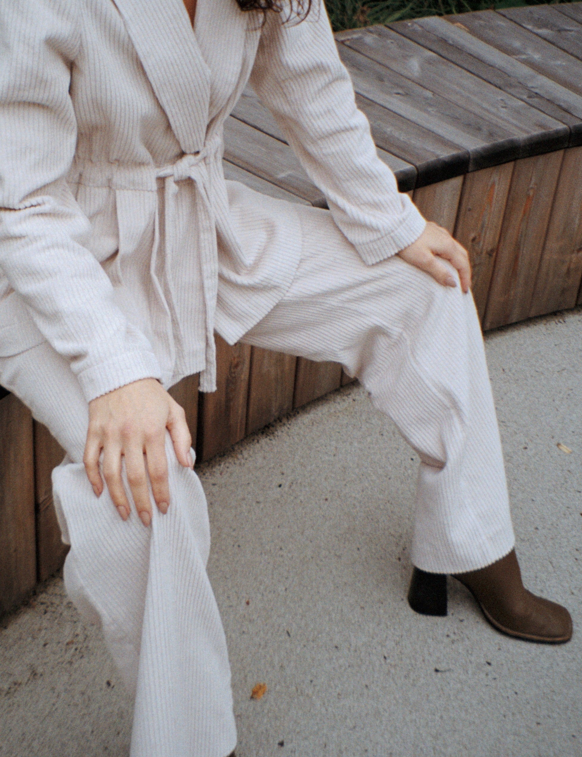 ELISE Corduroy Highwaist Trousers - Natural White