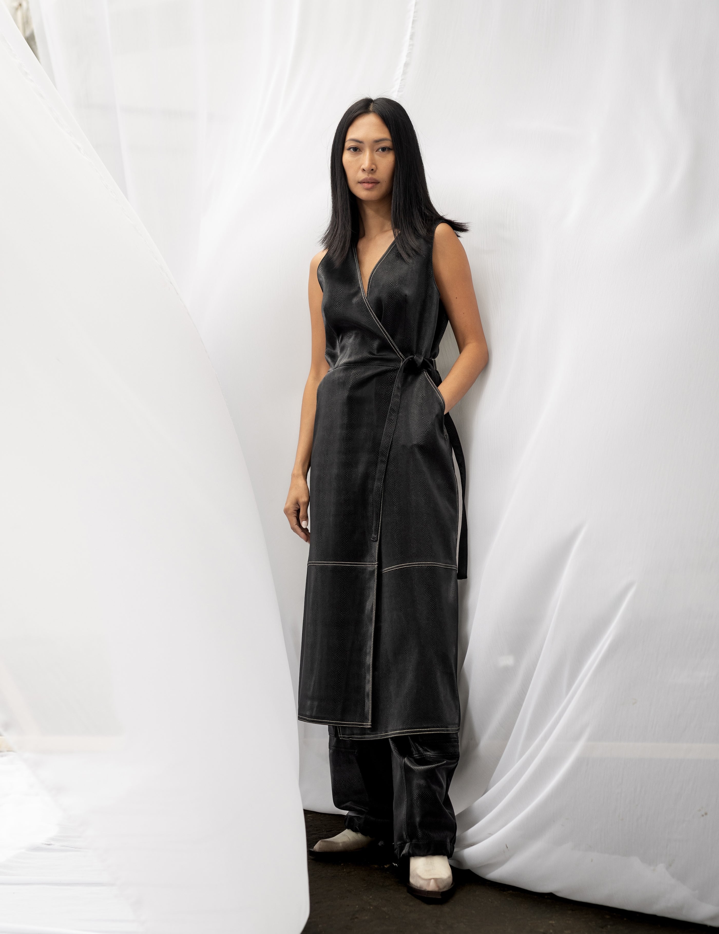 TARA Snake Patterned Pants - Shiny Black