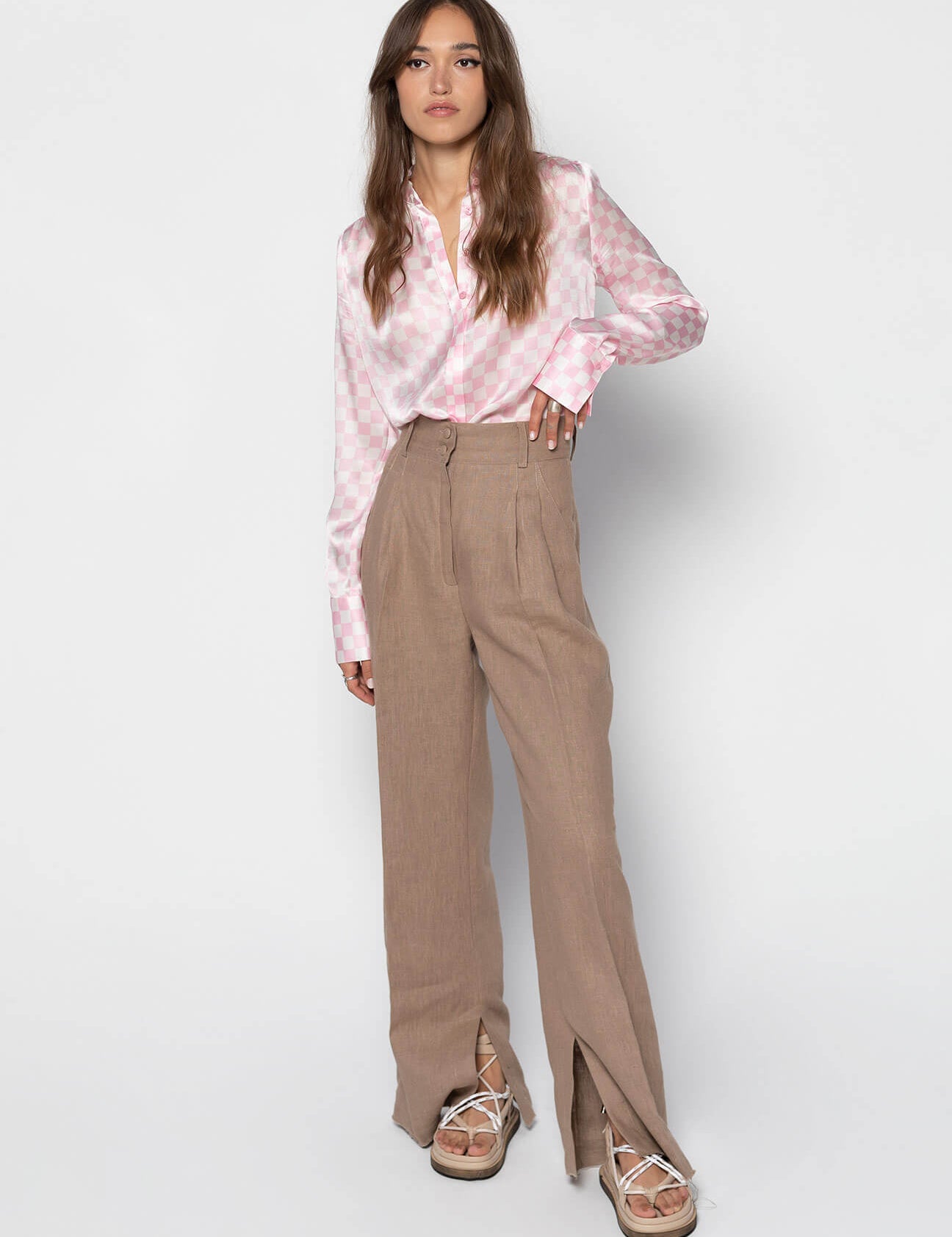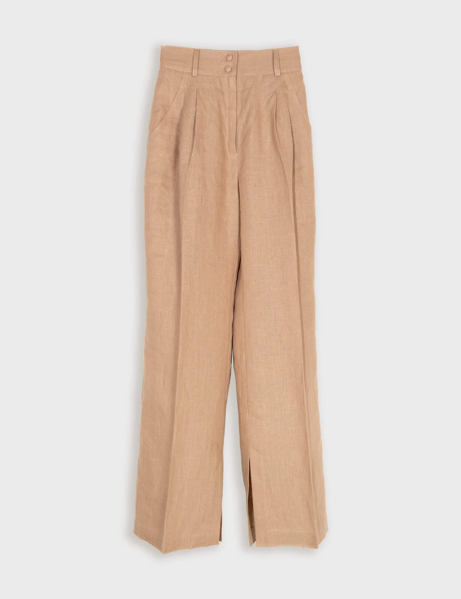 LYNA Wide High-waisted Linen Trousers - Latte