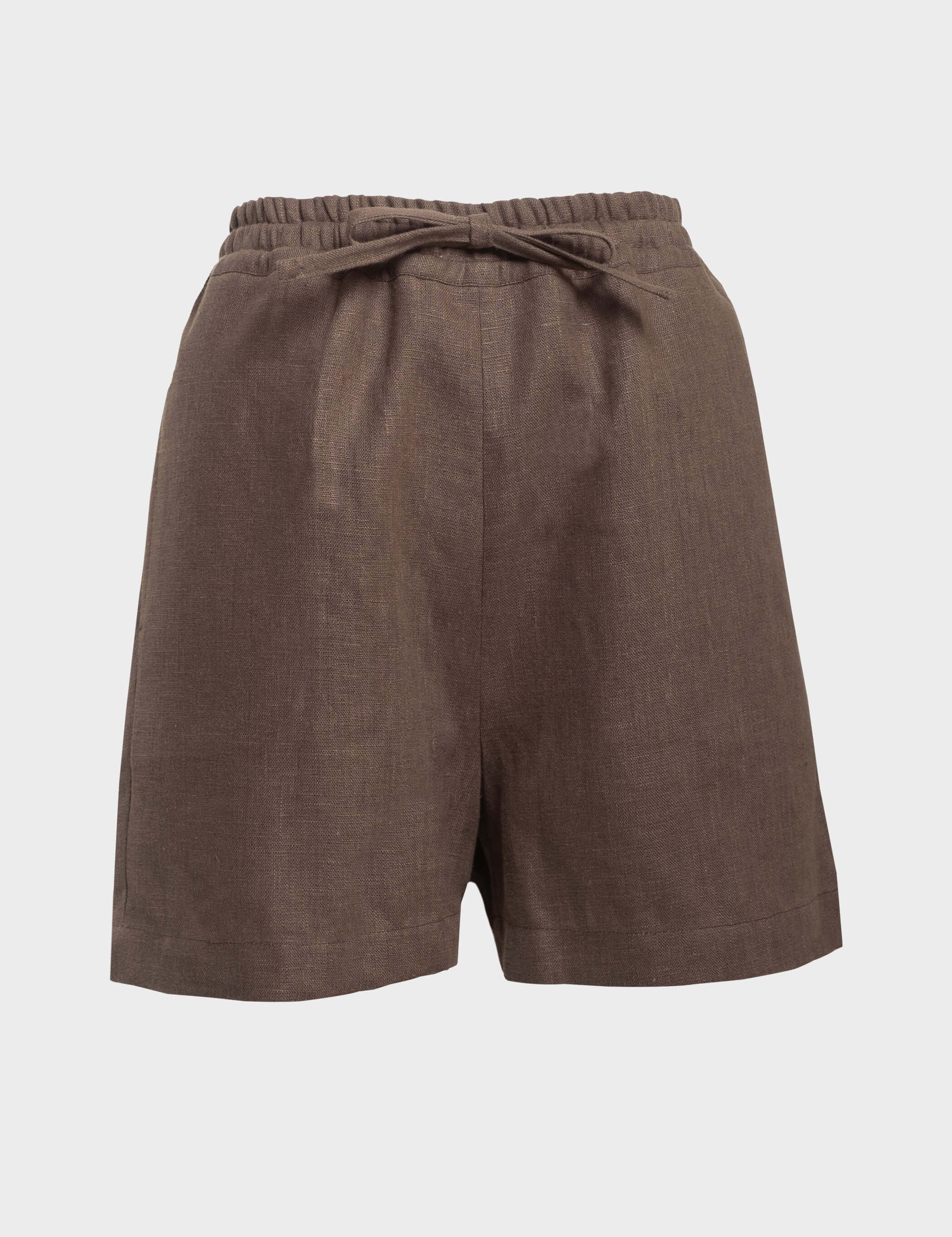 LIN High-Waist Linen Shorts - Cocoa